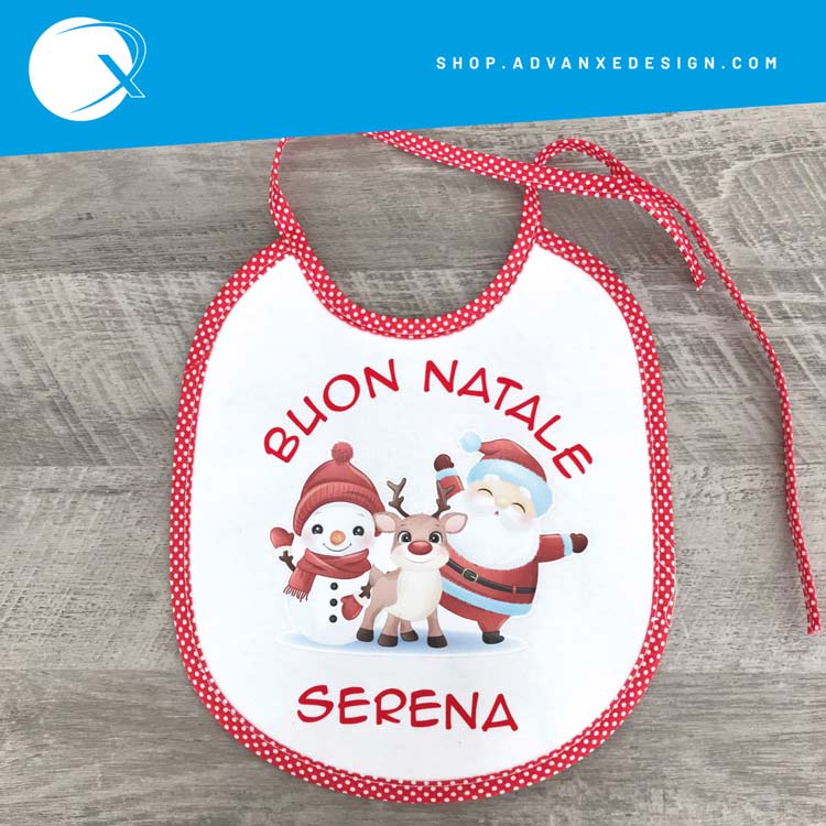 Il Bavaglino può essere personalizzato con il nome del tuo bambino/a. Idea regalo per festeggiare in modo diverso il Natale del tuo bambino/a.