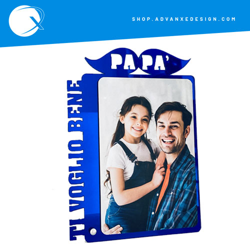 Scegli questa cornice in plexiglass specchiato nei vari colori argento, oro, blu e trasparente per celebrare il tuo papà!