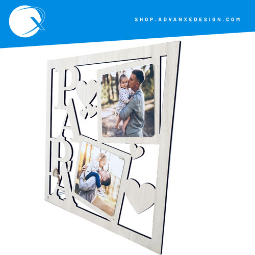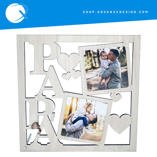 Vuoi celebrare il tuo papà con questa splendida cornice in legno realizzata con il taglio laser, perfetta per conservare i tuoi ricordi più preziosi. La cornice presenta la scritta "papà" in modo elegante e raffinato, mentre hai la possibilità di stampare due foto a piacere per rendere la cornice ancora più personale e unica.