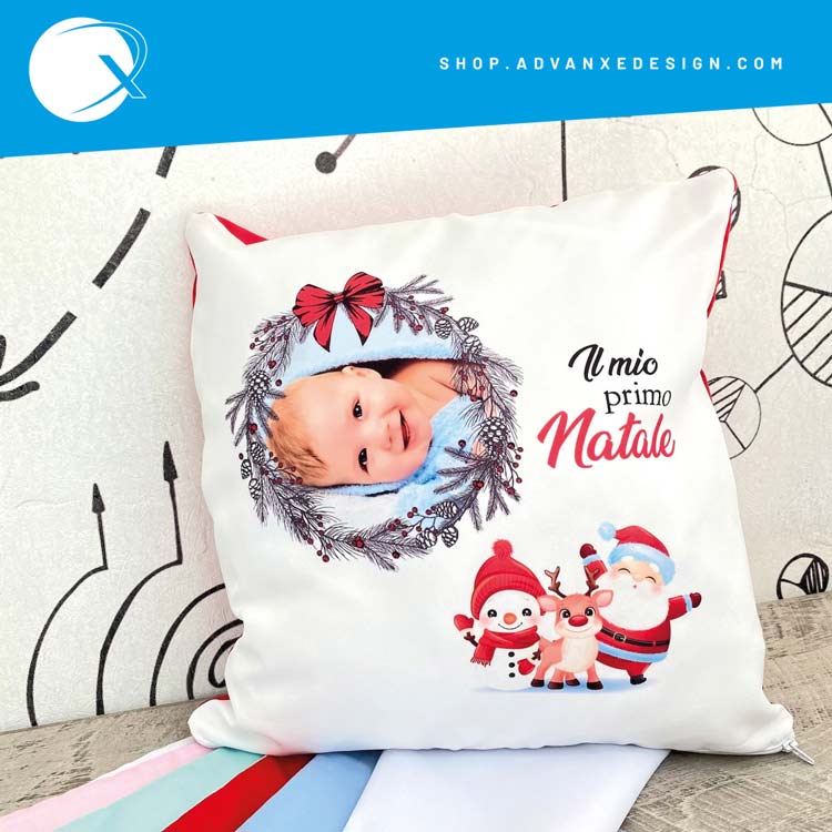 Cuscino tema Natale con scritta "Il mio primo Natale", perfonalizzabile con 1 foto, ideale come regalo di natale