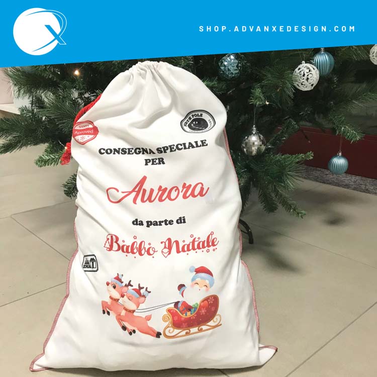 Stupisci i più piccoli con una sorpresa personalizzata: Il sacco di Babbo Natale può essere personalizzato con il nome del bambino/a.