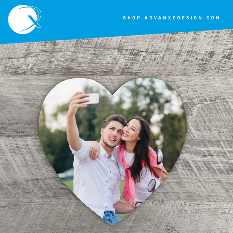 Colora la scrivania dell'uficio con un tappetino mouse a forma di cuore personalizzato con le tue foto d'amore preferite.